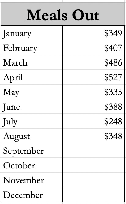 Nothing, I guess? Idk, I knew before this year that eating out is expensive. I still know that. I will not be tracking this in 2025.